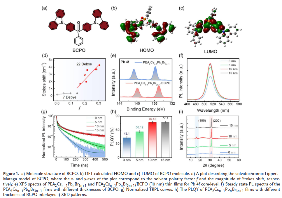 一是提出“双轴极化”分子设计新理念:BCPO分子在垂直方向形成偶极排列促进电子注入,水平方向通过咔唑苯基与钙钛矿表面强静电作用捕获卤素离子,实现“注入+阻迁”双功能。